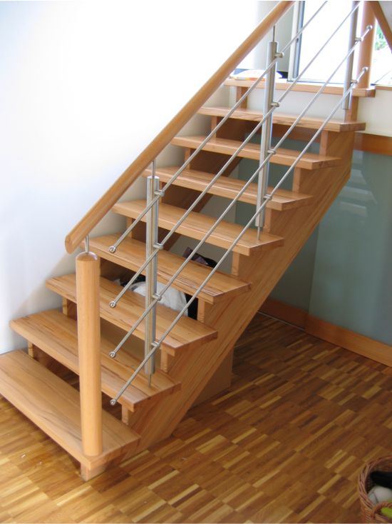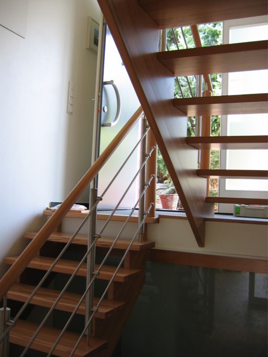 Wählen Sie aus verschiedenen Holzarten wie Eiche, Buche oder Nussbaum und kombinieren Sie diese mit eleganten Edelstahl-Elementen . Auch das Geländer gestalten wir individuell – ob modern, klassisch oder mit integrierter LED-Beleuchtung .